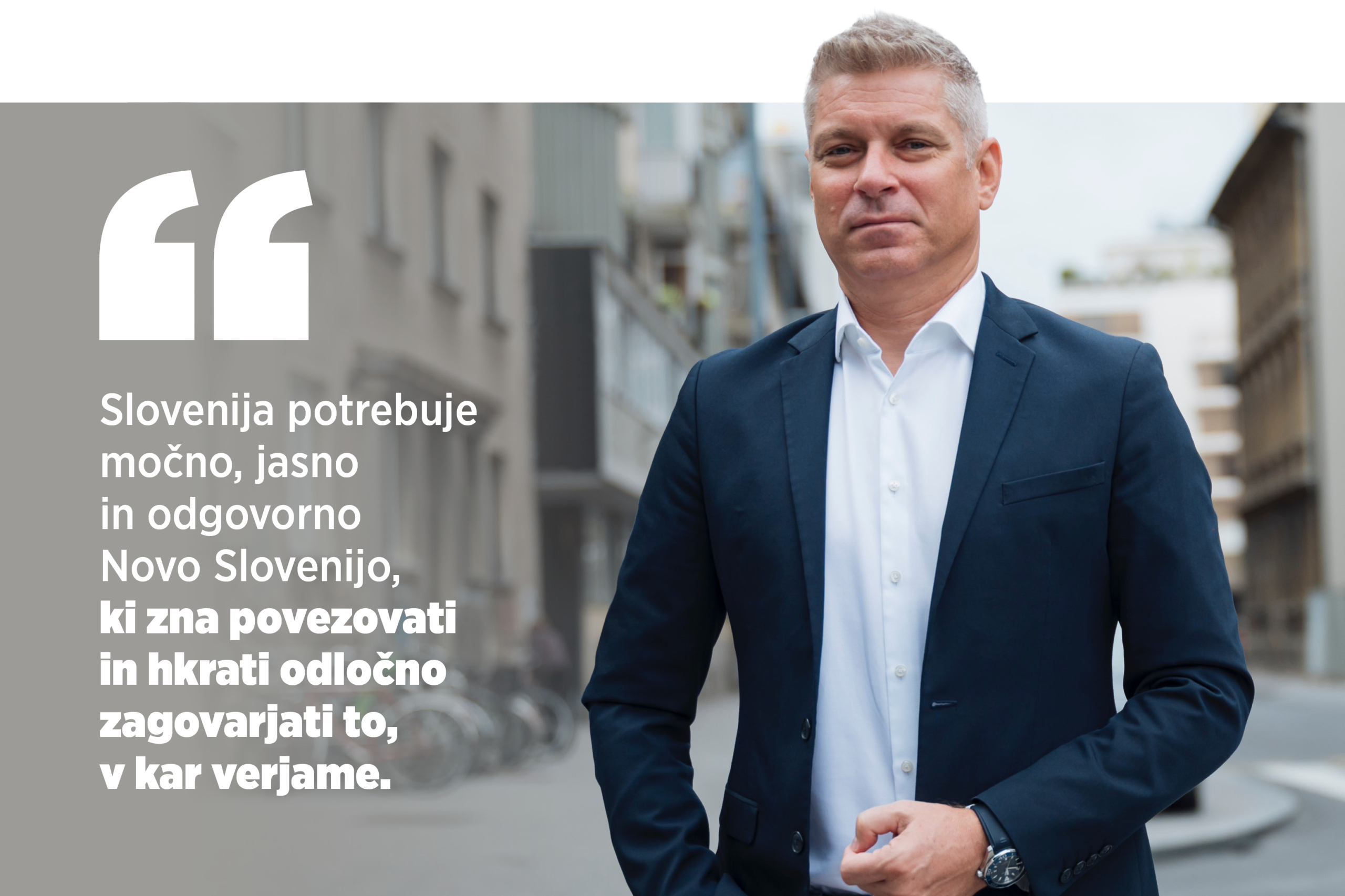 Želim ji, da ostane zvesta svojim koreninam, a hkrati pogumna in vizionarska. Da se ne boji iti proti toku, ko je to potrebno, in da zna graditi mostove – med generacijami in ljudmi z različnimi pogledi. Slovenija potrebuje močno, jasno in odgovorno Novo Slovenijo, ki zna povezovati in hkrati odločno zagovarjati to, v kar verjame. Želim ji vse najboljše.