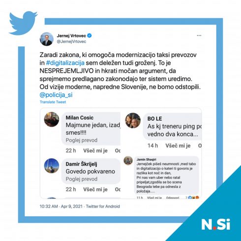 NESPREJEMLJIVE GROŽNJE MINISTRU JERNEJU VRTOVCU