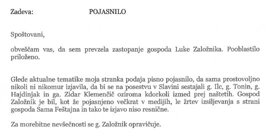 LUKA ZALOŽNIK PREKLICAL SVOJE NAVEDBE GLEDE PREDSTAVNIKOV NSi